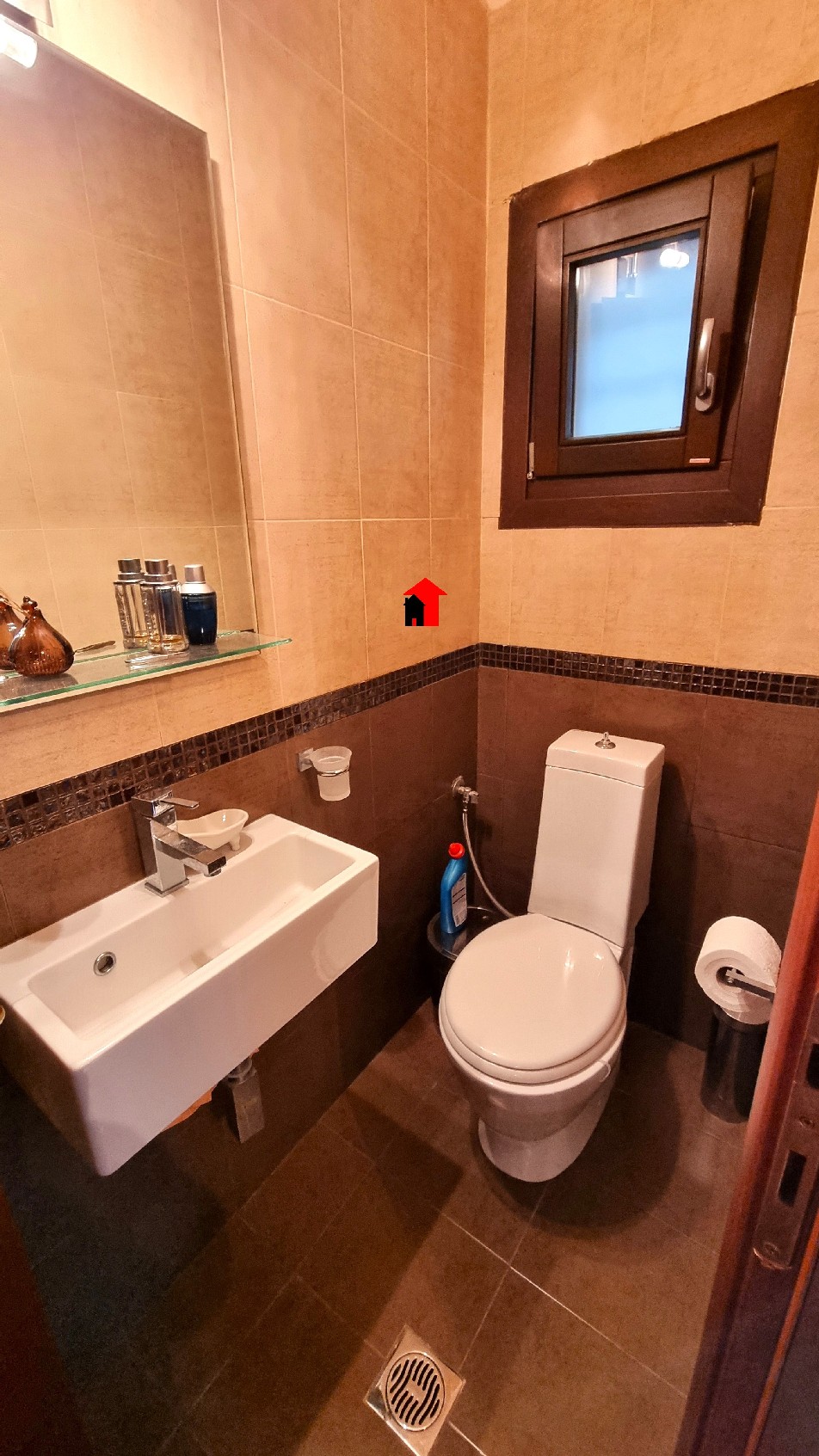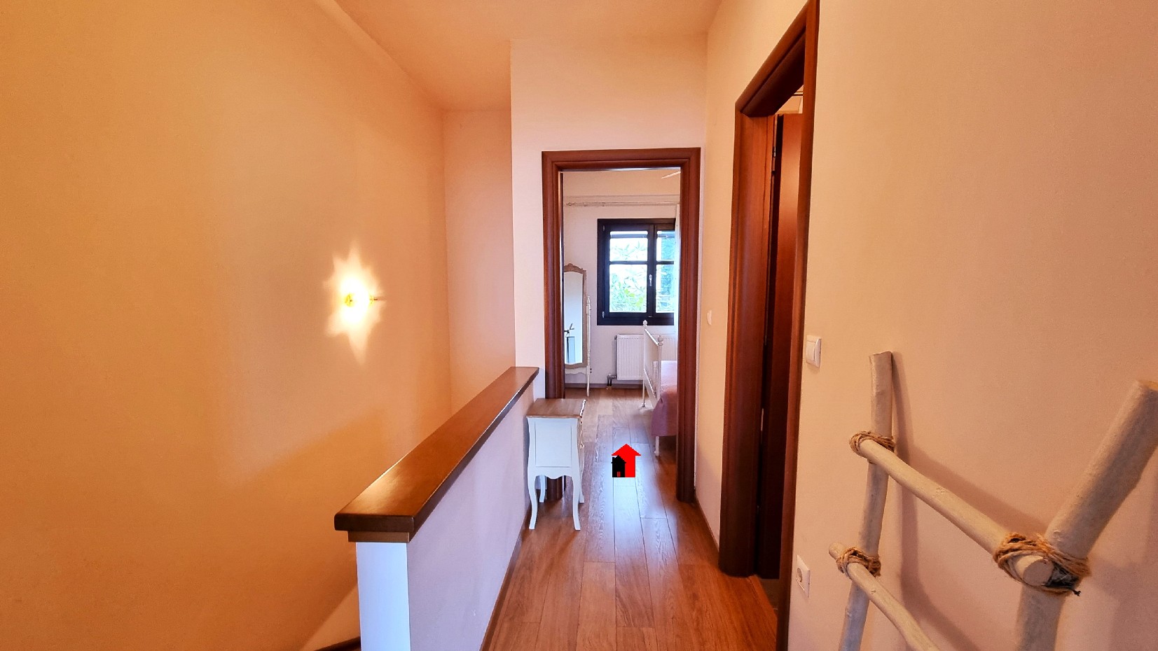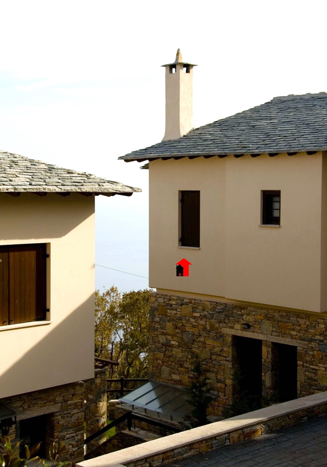It has been built with A’ quality materials, external insulation, wooden energy frames with double glazing, solid external security iron railing, oak floors, electricity heating burner, roof with traditional Pelion tiles and the external masonry at the garden level is covered with stones around the perimeter. The garden – yard is paved in its entirety, creating a unique outdoor living area where its residents will enjoy moments of relaxation during the warm months.