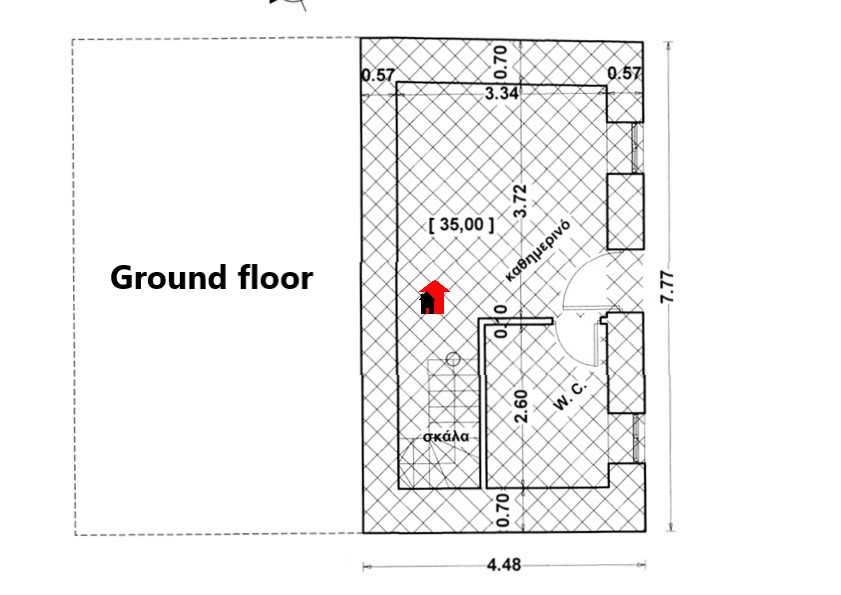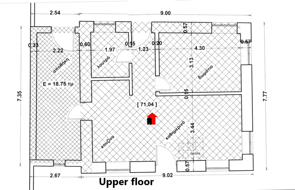 The property has been fully renovated in 2013, maintaining its original traditional character, with quality materials, is in excellent condition and consists of an open plan living room with fireplace – dining room – modern ergonomic kitchen, 1 bedroom with built-in wardrobe, large bathroom with corner bathtub and window, as well as a storage room of 18,75sqm on the upper level and 1 additional spacious studio with wardrobe and its own bathroom with window on the lower level.