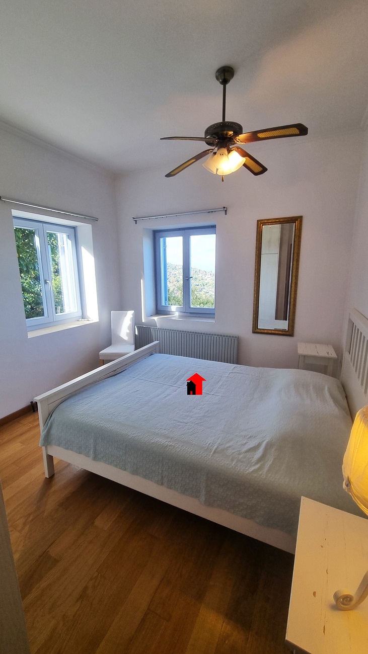 It has an energy-efficient fireplace with exit to all rooms, energy-efficient wooden frames with double glazing and screens, heating with an oil boiler, large verandas with a magnificent view of the Aegean Sea and the surrounding area, built-in BBQ, lush garden, easy car access, parking spaces for several cars.