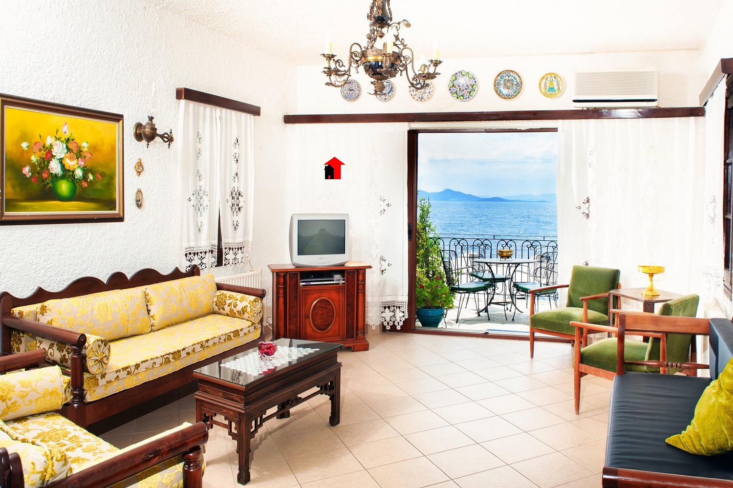 – 1ος ορ. Διαμέρισμα διαμπερές 98,30τμ που αποτελείται από καθιστικό, 2υ/δ, κουζίνα, μπάνιο και βεράντα μπροστά στη θάλασσα.